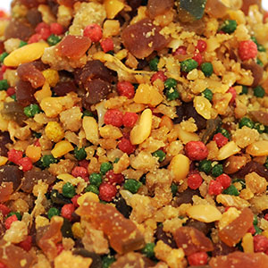 Frutas Desidratadas, Milho, Aveia, Soja Integral, Extrusada, Farelo de Soja, Óleo de Soja Refinado, Aditivo Aromatizante, Corantes, Fosfato Bicalcíco, Calcário Calcíto, Sulfato, Cloreto de Sódio, Sal, Sulfato Ferroso.